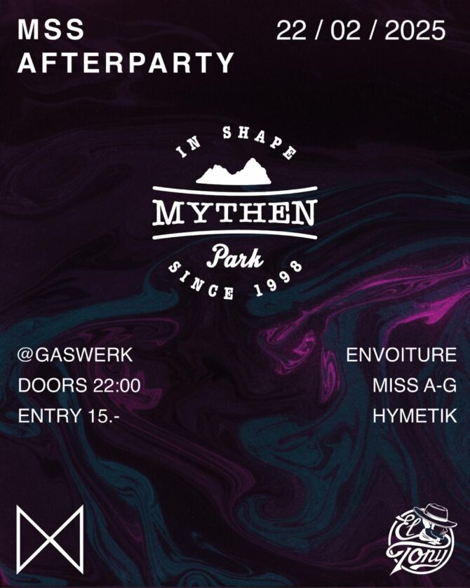 Die Offizielle Aftershow Party der Mythenstyle Session danach steigt im Gaswerk in Seewen. Für 15.- bist du mit am Start und feierst mit den Held:innen des Tages zur gute Laune Musik von DJ Envoiture, Miss A-G und Hymetik. Die Türen für die Wintersportler:innen und alle anderen Partygäste öffnen um 22 Uhr.