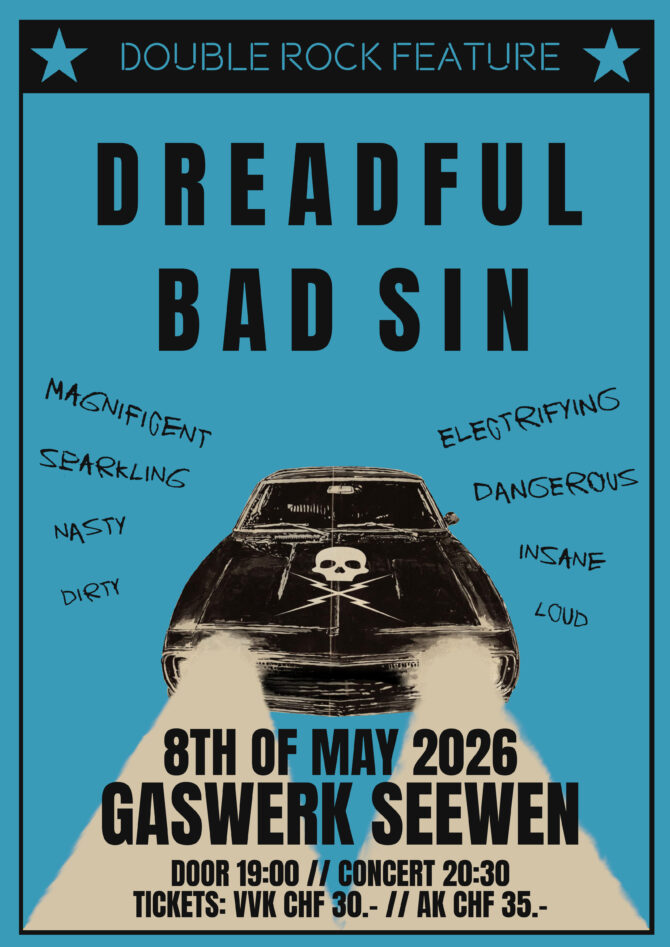 Rock’n’Roll ehrlich und laut, mal lustig mal versaut, und durstig wenn’s haut! So gibt sich die 4er Combo aus dem wunderschönen Muotathal. Entstanden aus ehemaligen Bands wie „Asskick“ und „The Sinalcos“, knallen die Jungs diverse Rock Klassiker aus den Boxen. Es wird gecovert, aber auch Eigenkompositionen werden zum Besten gegeben. Wer auf gute alte Rockbands steht, wird hier vorzüglich verköstigt.