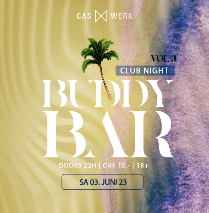 Nach dem Erfolg der ersten beiden Ausgaben der Buddy Bar Club Night, servieren wir euch die besten Hits aus den beliebten Partymetropolen wie Ibiza oder Florida erneut im Gaswerk. Die perfekte Kombination aus gemütlicher Strandbar Atmosphäre draussen und heissen Clubhits drinnen – Mit Cocktails und sommerlichen Vibes in die Nacht tanzen.