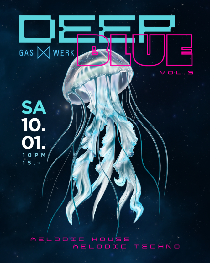Am SA, 10.01.2026, taucht das Gaswerk Seewen in tiefblaues Licht und pulsierende Melodic House & Melodic Techno-Beats. Eine Nacht, in der treibende Sounds und eine besondere Atmosphäre das Gaswerk in eine andere Welt tief unter dem Meeresspiegel verwandeln.