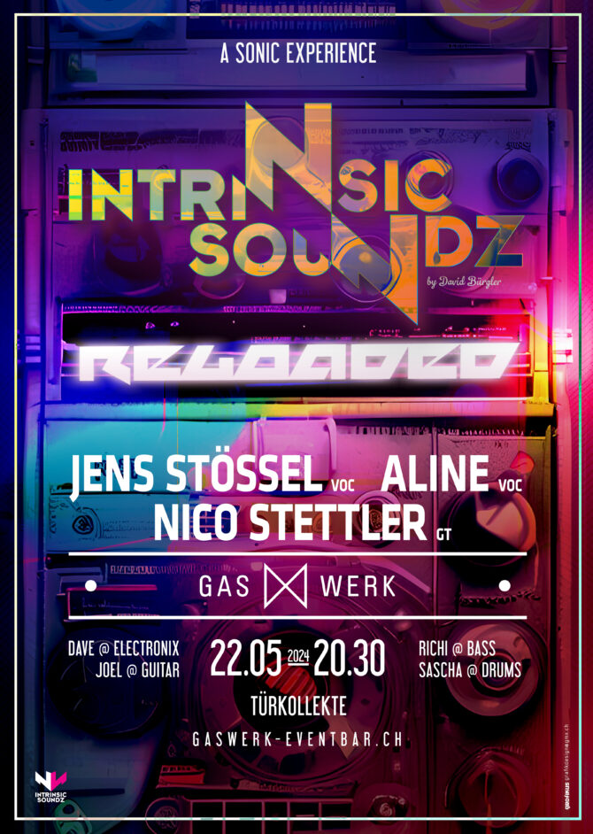 INTRINSIC SOUNDZ by David Bürgler gibt es an ausgewählten Mittwochen in der Gaswerk Eventbar in Seewen. Musikgenuss in ungezwungenem Ambiente, der sich immer wieder neu erfindet: Eine fixe Band, bestehend aus lokalen Musikern, begleitet speziell für diesen Abend eingeladene Sängerinnen und Sänger, Musiker oder andere Künstler. Der Sound ist Pop-orientiert, kann aber (je nach Gastmusikern) auch Elemente aus anderen Stilrichtungen wie Jazz, Klassik oder Volksmusik bieten. Zudem werden in regelmässigen Abständen junge Musiker und Kulturschaffende aus der Region als Gäste eingeladen.