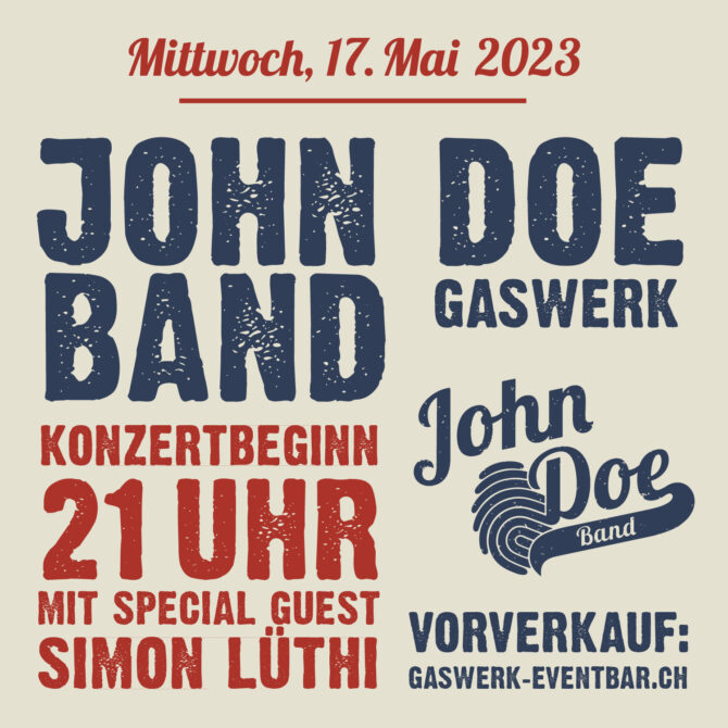 Beim Hauptkonzert am Abend wartet ein besonderes Highlight auf das Publikum: Die Band wird Simon Lüthi als Special Guest auf die Bühne holen. Er ist einer der ganz Grossen in der Folklore-Szene und über sein Genre hinaus bekannt für seine Virtuosität und Fingerfertigkeit auf der Handorgel, Schwyzerörgeli & Miniorgel. An der Jazznight Lichtensteig 2022 traten Simon und die John Does erstmals zusammen auf und es war offensichtlich, dass sich ihre Wege wieder kreuzen würden – der zweite Streich folgt nun am 17. Mai im Gaswerk.