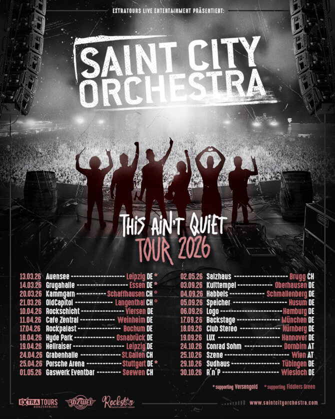 Mit ihrem neuen Album THIS AIN’T QUIET legen Saint City Orchestra ein dreckiges Manifest vor – gegen die Stille, gegen das Schweigen, gegen das brave Mitlaufen. Was hier aus den Boxen knallt, ist ein rotzfrecher Mix aus Irish Punkrock und der ungeschönten Realität des Lebens – laut, wild, ehrlich und mit ordentlich Portion Ironie.