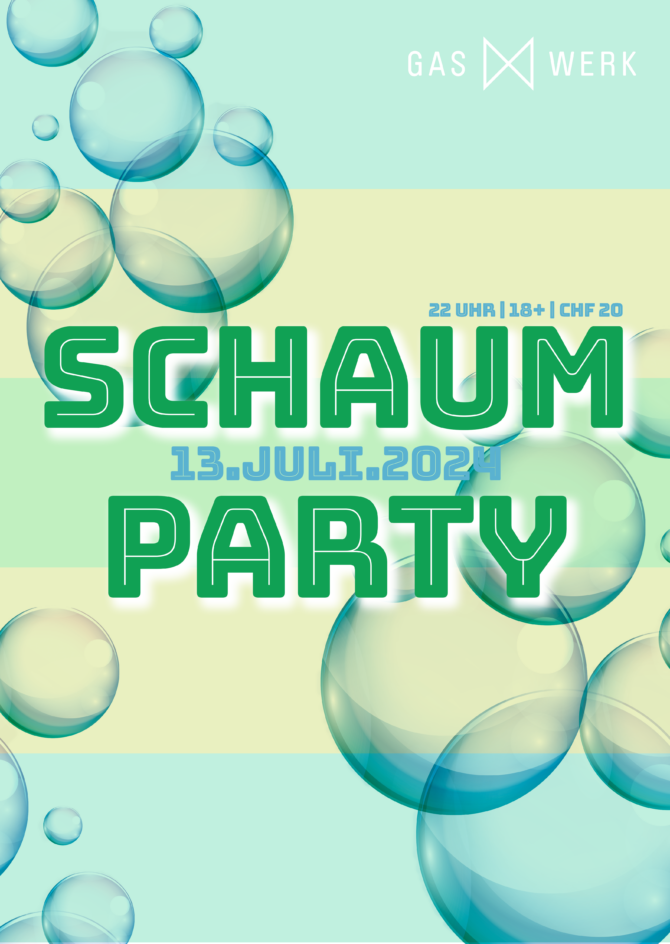 Die feucht-fröhliche Gaswerk Schaumparty geht in die dritte Runde. Am SA 13. Juli wird unsere Hochleistungs-Schaum-Maschine für einen meterhohen Schaumberg auf dem Dancefloor sorgen. Gepaart mit dem besten Club-Sound, leckeren Drinks und vielen Besucher:innen wird das Gaswerk sprichwörtlich überschäumen! Auf dem Gaswerk Aussen-Areal lockt zudem unsere Sommerbar zum relaxen und Cocktails schlürfen ein. Feiere mit uns den Sommer und sichere dir jetzt eines der begehrten Tickets im Vorverkauf!