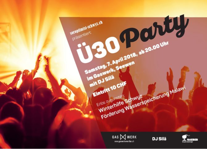 Ab 30 Jahren geht’s erst so richtig los. Das haben sich die Soroptimistinnen des Club Schwyz zu Herzen genommen und laden somit freudig zu ihrer Ü30 Party im Gaswerk ein.